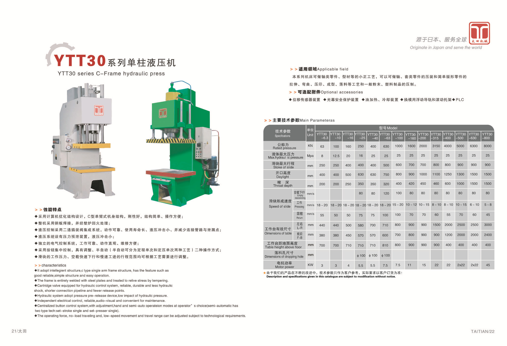 本系列機床可做軸類零件。型材等的小正工藝,可以可做軸、套類零件的壓裝和簡單版型零件的拉伸、彎曲、壓印、成型、等工藝和一般粉末、塑料制品的壓制。